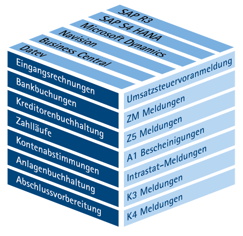 Hinweis: SAP, SAP R/3, SAP s4/Hana, Navision, Business Central und Datev sind Marken oder eingetragene Marken der SAP SE, der Microsoft und der Datev eG. Wir stehen in keiner geschäftlichen Verbindung zu diesen Unternehmen oder deren verbundenen Unternehmen.